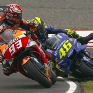Sobre el final de competencia, Marc Márquez (Honda) y Valentino Rossi (Yamaha) se llevaron todos los focos. El español intentó sobrepasar al italiano, pero forzó la maniobra, deslizó sobre la moto de “Il Dottore”, lo embistió y sacó de pista; ello le valió una penalización de 30 segundos.