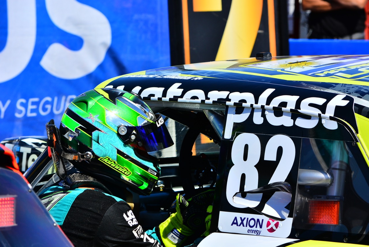 Valentín Aguirre, con el arrecifeño del JP Carrera, arriesgó y casi se despista, pero pudo retomar su senda para quedar detrás de Lambiris, en la largada, en una frenética disputa por la punta de la carrera.